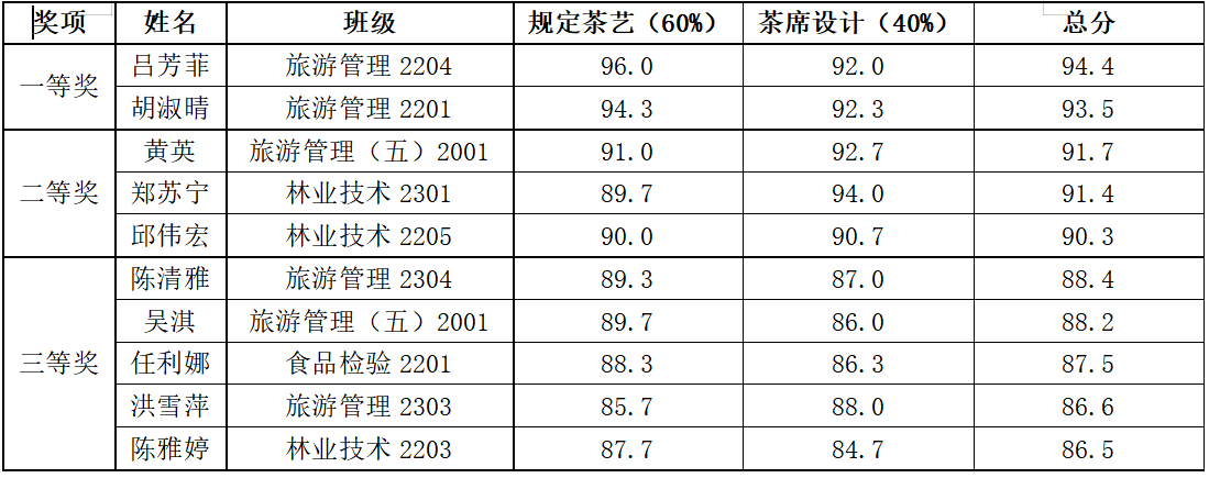 通过本次中华茶艺技能竞赛,学生对茶文化有了深刻的了解,学会了新技能。今后林学系将持续秉持“以赛促教、以赛促学、以赛促改、以赛促建”的原则,通过技能月活动,持续探索和培养茶艺高技能人才,将茶文化和职业教育高度融合。