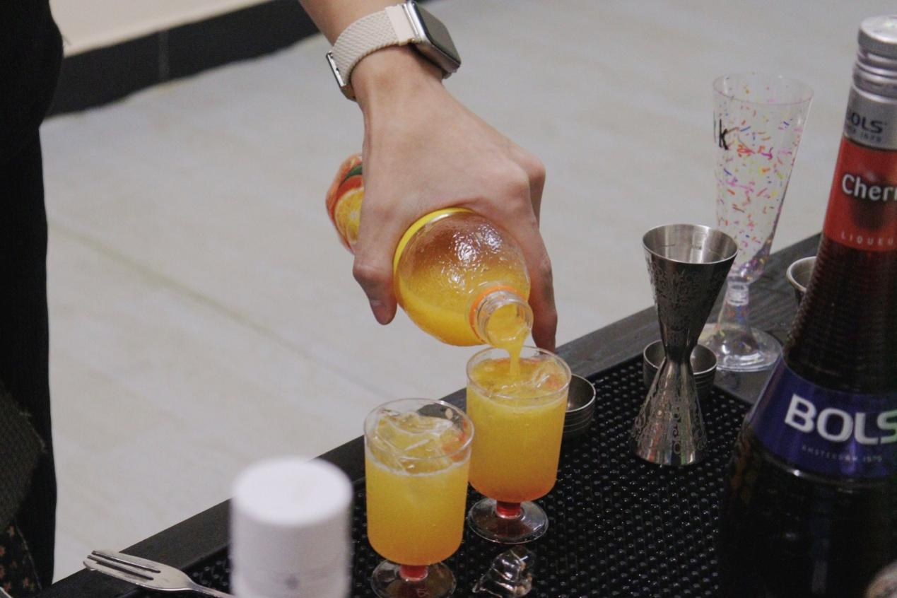 调酒,是在玻璃杯中创造宇宙,每一次摇晃与搅拌,都是生活的诗意表达。将不同风味的酒液调和,宛如调和人生的酸甜苦辣,调出专属于自己的那一抹独特滋味。本次活动给大家提供了一个调酒的场所,在微醺中品味生活的多样与美好,让灵魂在酒香中找到片刻栖息之所,更是让自己与他人互动,放松心情的好方式。