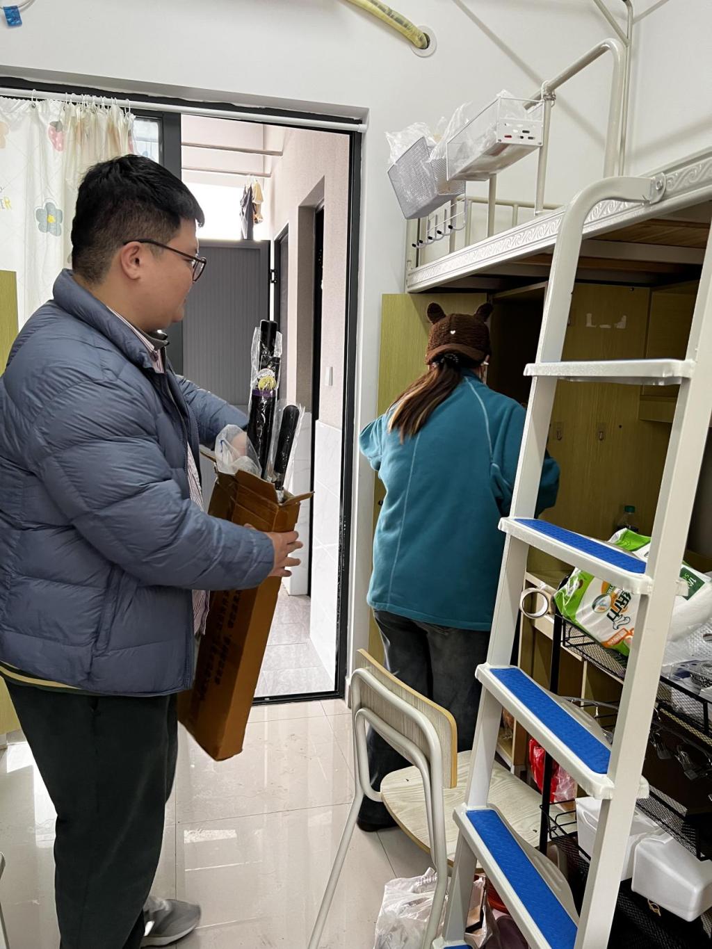 林学系教务科科长俞群老师仔细查看了宿舍里的设施设备,对存在的问题及时协调相关部门进行解决,确保同学们能够住得舒心、安心。并温馨提醒学子们注重饮食健康,确保体质强健,注意个人卫生和安全,遵守学校的规章制度,共同营造一个和谐、文明、安全的校园环境。在遇到困难时要向老师和辅导员反映。
