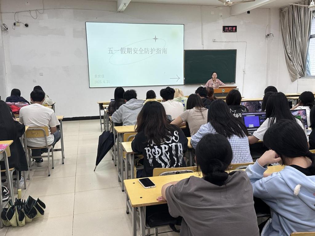 班会上,各班辅导员围绕“离校安全、隐患防范、文明守纪”三大核心模块展开,详细讲解了假期安全注意事项,强调了假期交通安全、防诈骗安全、消防安全、食品安全、网络安全、防溺水安全、用电安全以及假期的时间安排等多方面内容。并提醒同学们要注意安全隐患,提高警惕,平安愉快地度过五一假期。