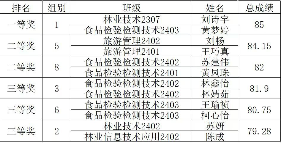 经过评委们的严格评审,最终评选出六名参赛选手脱颖而出。此次赛项获奖的同学名单如下: