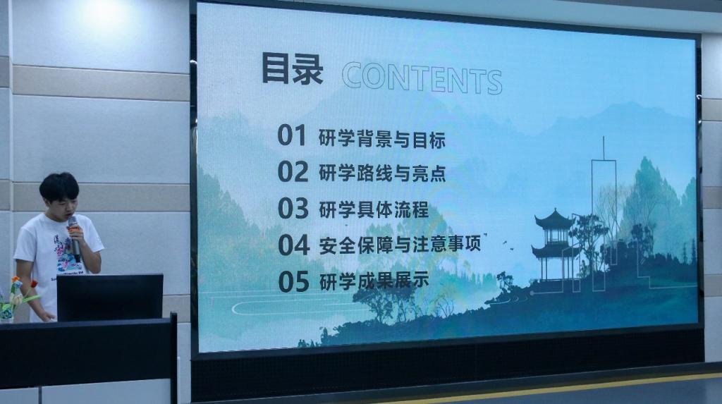 决赛现场,气氛热烈而紧张,选手们根据现场的抽签顺序决定出场顺序。晋级队伍带着精心准备的研学方案,自信满满地登上舞台。各队伍通过PPT展示、现场讲解、才艺展示等多种形式,详细介绍了研学方案的设计思路、目标、内容及实施步骤。