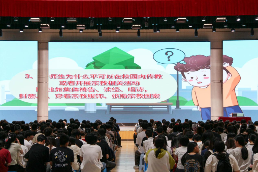 大会尾声,蔡丽琼老师对吴佳颖、樊寿娜两位老师的讲解内容进行总结。为进一步强化思想引领,林学系组织全体新生观看《涉校宗教法规普法视频》。同时,也向全体新生提出殷切期望:希望同学们珍惜学习机会,善用政策资源提升自我,以坚定信念、扎实专业能力,在新时代实现个人与社会价值的统一。