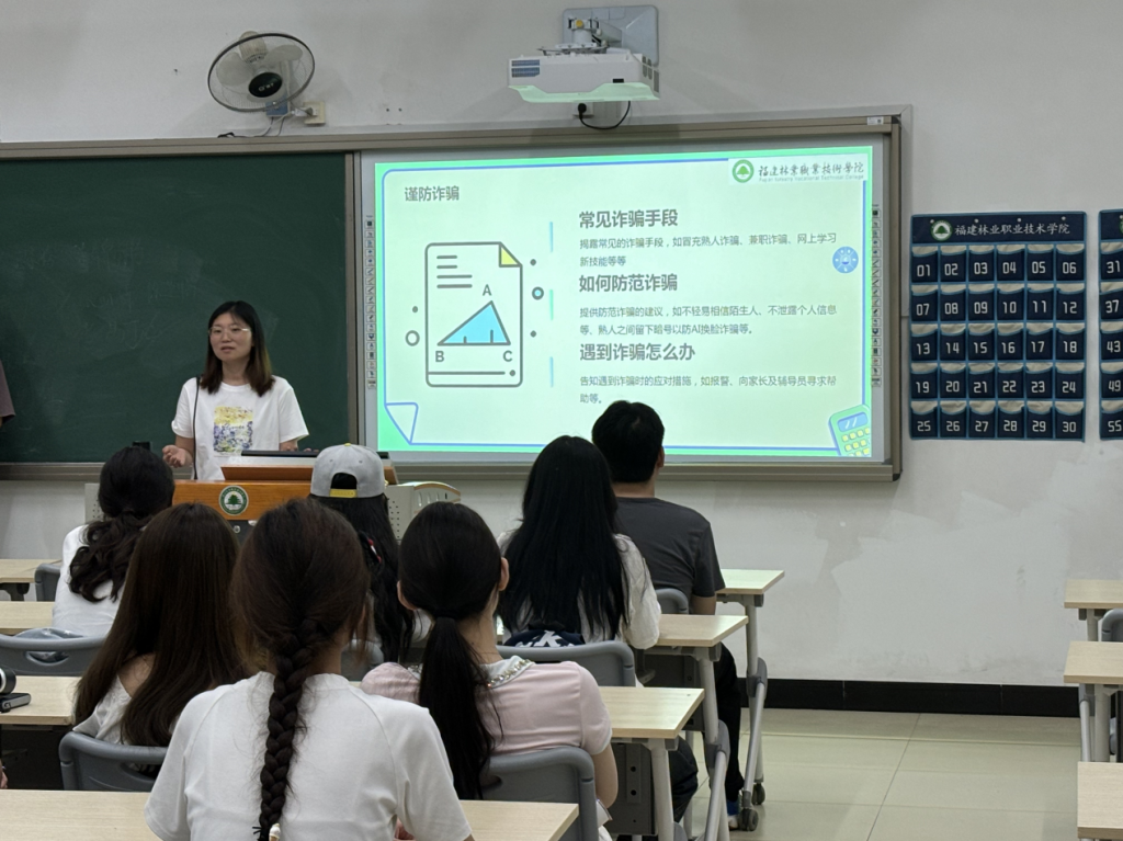 班会上各辅导员详细解读了学校在考勤、课堂纪律、考试规则等方面的规定,校园安全方面从校园交通、宿舍用电、公共设施使用等多角度展开。在宿舍内避免使用违规电器,以免引发火灾等安全事故。在防诈骗专题中,结合当下常见的诈骗手段,如网络购物退款诈骗、冒充公检法诈骗、校园贷诈骗等进行了深入剖析。告知同学们不要轻易相信陌生人的电话、短信和网络信息,不随意点击不明链接,遇到可疑情况要及时向老师和学校保卫部门报告。