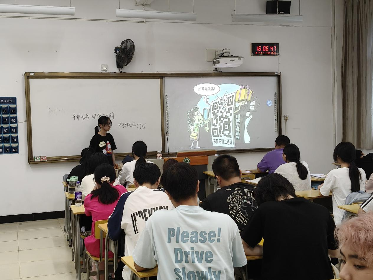 各班级以“贴近学生、实用有效”为原则,结合线上学习、科研资料查询、社交娱乐等日常场景,设计多元化宣讲内容。各班主持人通过PPT展示近期高校学生遭遇的“刷单返利诈骗”“游戏账号虚假交易”“冒充老师收取费用”等典型案例,用“身边事”警示“身边人”,让学生直观感受网络诈骗的隐蔽性与危害性。重点解读《网络安全法》《个人信息保护法》中与学生密切相关的条款,引导学生树立“网络行为有底线”的法治观念。播放网络安全公益短片,以动画、真实事件还原等生动形式,演示钓鱼网站识别、恶意软件防范、个人信息保护等实用技巧,让抽象的安全知识变得通俗易懂。