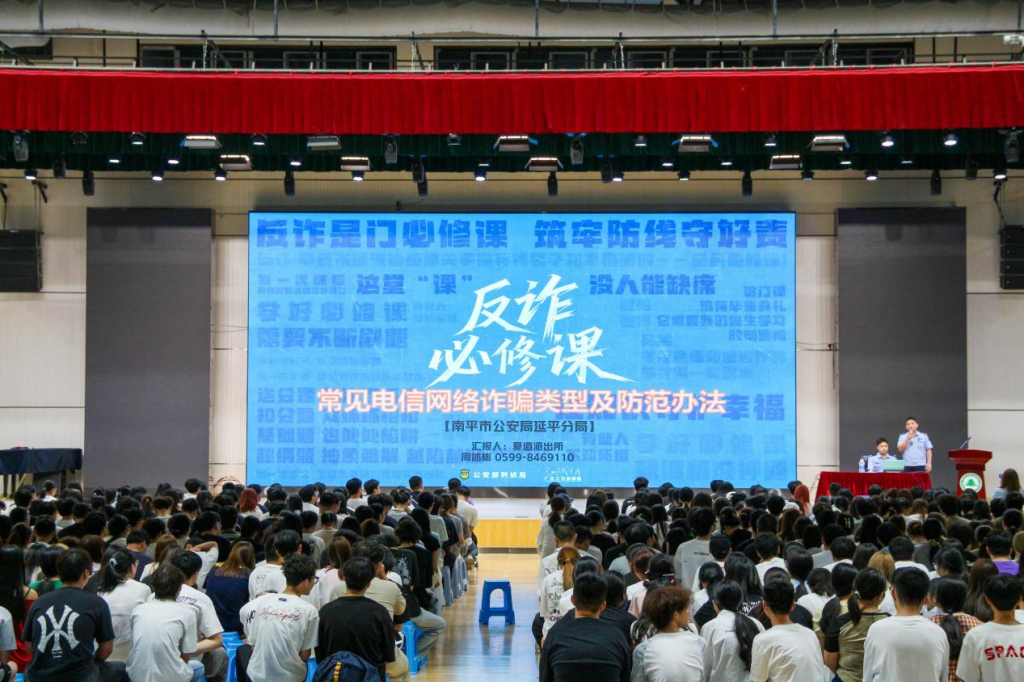 大会伊始,夏道镇派出所童警官以反诈宣传开篇,结合本地高校网络刷单、网游交易等近期诈骗案例,拆解作案手段,提醒新生警惕陌生人信息、保护隐私与银行卡信息,遇疑及时联系师长或报警。随后,童警官拓展安全教育维度:围绕国家安全,警示新生防范境外势力借学术交流、网络问卷窃取敏感信息;针对网络安全,告诫不点陌生链接、不传谣言;谈及消防安全,结合宿舍违规用电火灾案例,讲解相关消防安全知识;禁毒教育中,揭露“奶茶粉”“电子烟油”等伪装毒品危害,呼吁远离复杂场所、拒收陌生人食物;最后借校园斗殴、校园欺凌案例,阐释《治安管理处罚法》、《民法典》相关后果,引导新生树立法治意识,全方位筑牢安全防线。