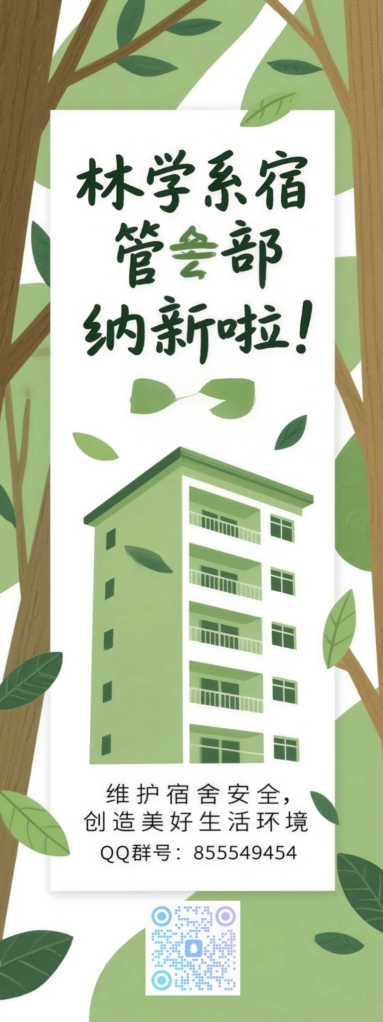 部门介绍:林学系宿管部主要负责学生宿舍的安全巡查与秩序管理,是保障同学生活环境和谐稳定的重要力量。