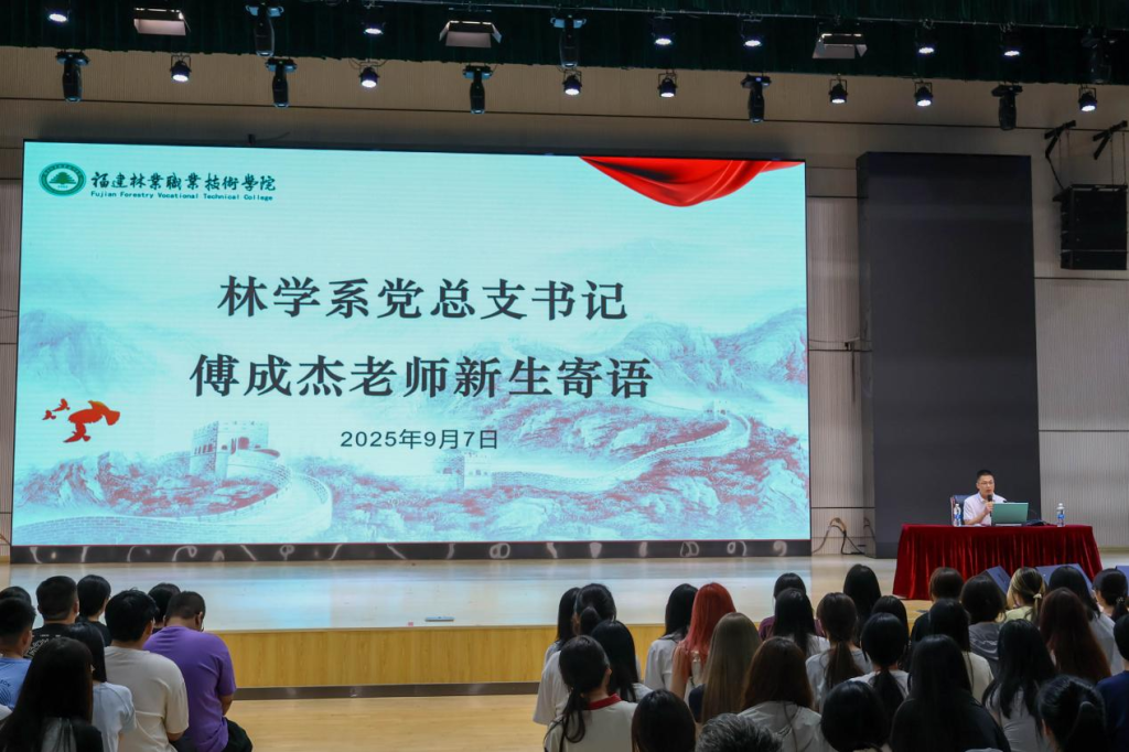 带着初秋的朝气,怀着对大学生活的期待,各位新同学刚刚踏入校园,开启人生全新的旅程。为了帮大家更快褪去青涩、适应校园节奏,2025年9月7日19:00,林学系开展第一场新生入学教育活动。参加本次新生入学教育大会的老师有林学系党总支书记傅成杰老师、林学系副主任余燕华老师、教务科科长俞群老师、林学系各班新生辅导员以及林学系2025级大一新生。本次大会由林学系专职辅导员、学生科科长兼团总支书记(代)郑立娜老师主持。