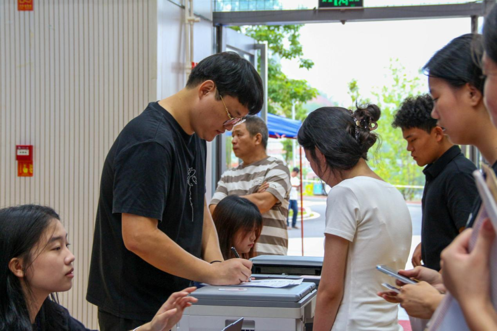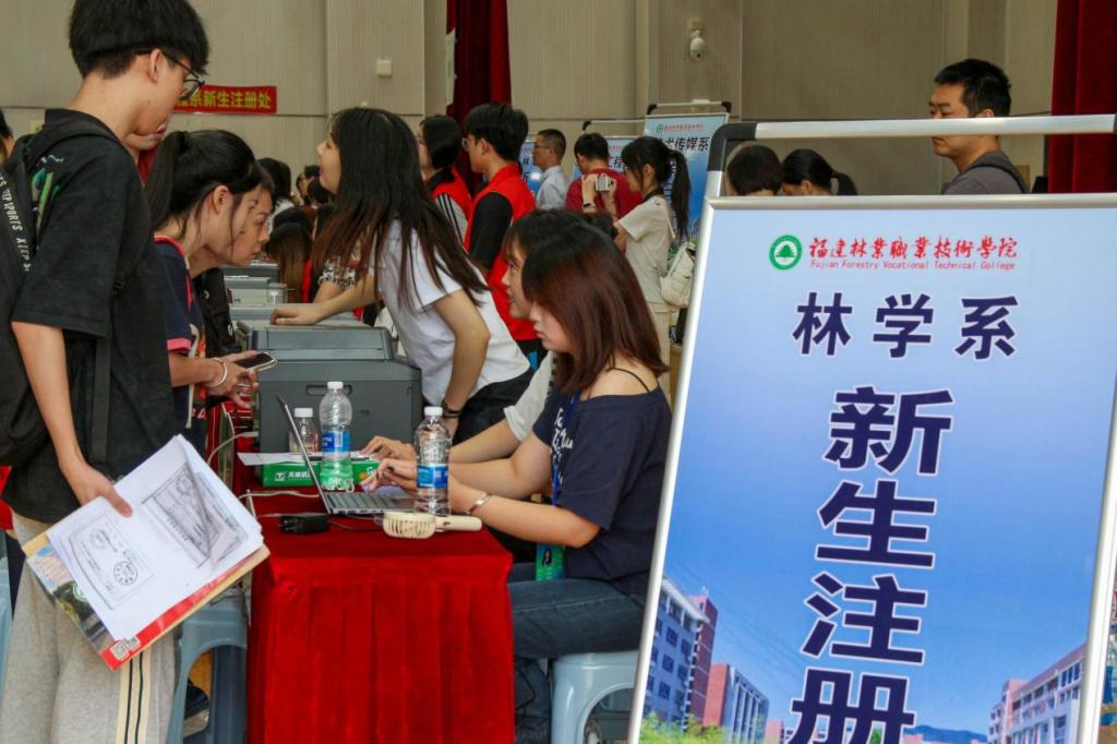 萌新们进入校门后便是迎新队伍的第一站,学长学姐和老师们在此地等待着新生的到来,开启萌新们在林职院的第一章。林学系的志愿者引导着新生进入校园抵达我们的注册处,帮助新生们完成入学注册并领取报到单。并引领着新生前往我们的大本营。