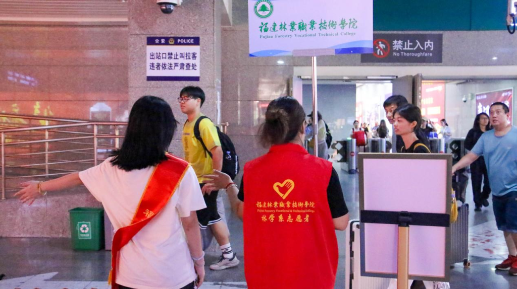 萌新们下了动车之后,就已经有老师以及学姐学长在动车站出站口等待着新生,并引领着新生乘坐公交前往学校。