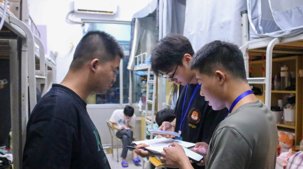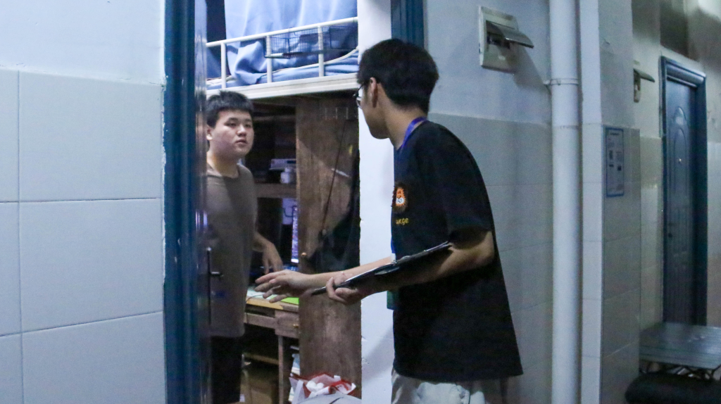 在卫生方面,工作人员查看了宿舍的清洁情况,包括地面、桌面、床铺等,督促同学们养成良好的卫生习惯,保持宿舍整洁舒适。对于检查中发现的问题,工作人员及时记录并现场指导整改,确保问题能够得到快速解决。