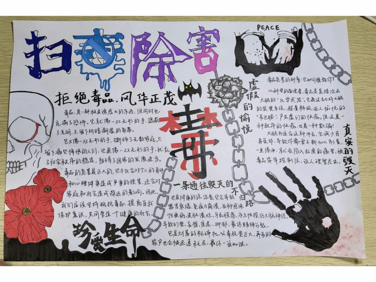 活动开展以来,得到了同学们的踊跃参与,书法、绘画、手抄报、征文四大类作品佳作频出。软笔硬笔皆显风骨,禁毒名言与林公寄语在笔墨间流转;丹青妙笔绘就担当,毒品危害的警示与健康生活的向往跃然纸上;手抄报版面精美、知识详实,成为禁毒科普的生动载体;征文作品或追溯历史、或聚焦现实,用真挚文字传递“禁毒即爱国”的深刻内涵。