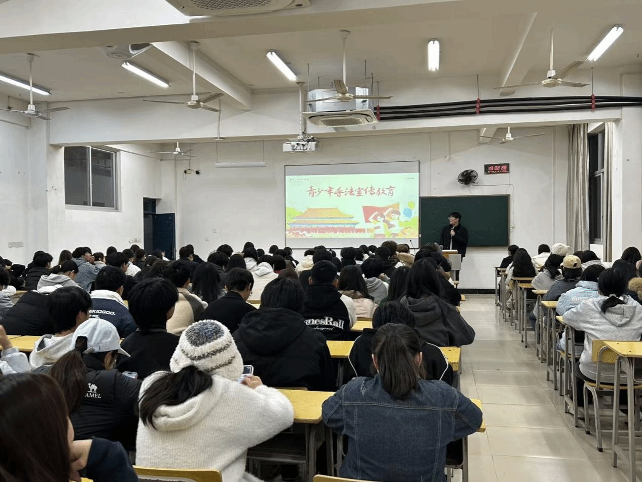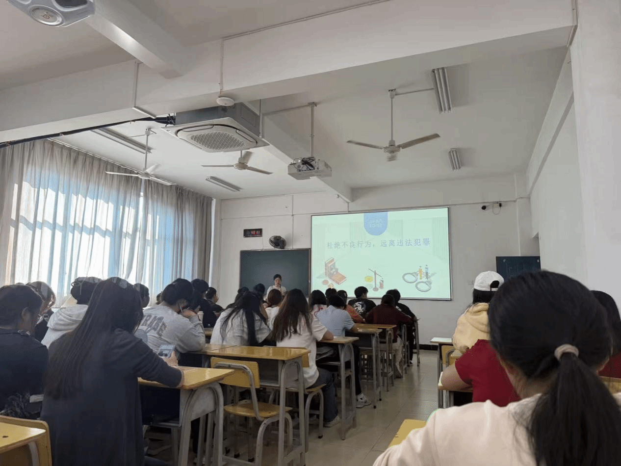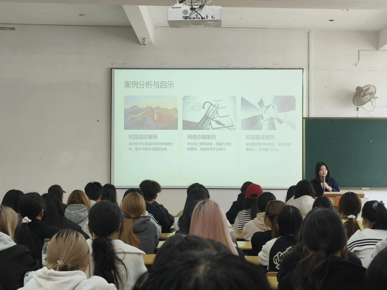 班会伊始,辅导员结合大学生的学习生活实际,通过PPT展示、案例讲解等形式,从校园常见的法律问题入手,围绕民法典中关于人身权益、财产安全的相关规定,以及网络诈骗、校园贷、交通安全、知识产权保护等与学生息息相关的法律知识展开讲解。老师选取了多个发生在高校的真实案例,如校园兼职诈骗、室友矛盾引发的侵权纠纷、网络言论不当导致的法律后果等,深入剖析案例背后的法律原理和责任认定,让同学们直观感受到法律的严肃性和实用性。