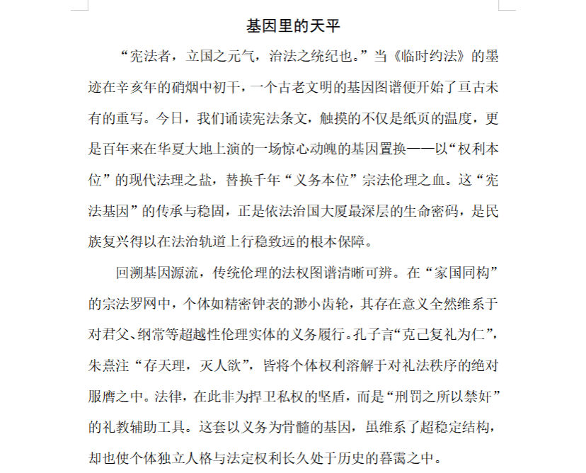 宪法,是治国安邦的总章程,是党和人民意志的集中体现,其精神早已融入民族血脉,成为代代相传的法治基因。为深入学习宣传贯彻习近平法治思想,推动宪法深入人心,让尊法学法守法用法成为社会风尚。林学系办公室于2025年12月1日举办“传承宪法基因,推进依法治国”主题征文活动,此次征文活动吸引了众多写作爱好者踊跃参与。