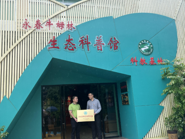 座堂会后,林学系党总支书记傅成杰为牛姆林景区颁授了“研学实践教育基地”与“森林生态旅游与康养教师实践基地”牌匾。
