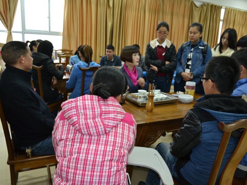 为了提高学生动手操作能力和备战2015年福建省高职技能大赛中华茶艺项目,我系于12月9日邀请了南平“又一村茶艺居”的两位高级茶艺师为旅游管理专业的同学进行茶艺技能示范和培训。两位茶艺师给同学们介绍了茶叶的基础知识和行茶礼仪,现场展示了绿茶、乌龙茶、红茶的冲泡技法,并与同学们进行互动交流。茶艺师娴熟的冲泡手法和形象生动的讲解,激发了同学们学习茶艺的兴趣,对实践技能的提升起到很好的帮助。(文/陈元镇,图/钱叶会)