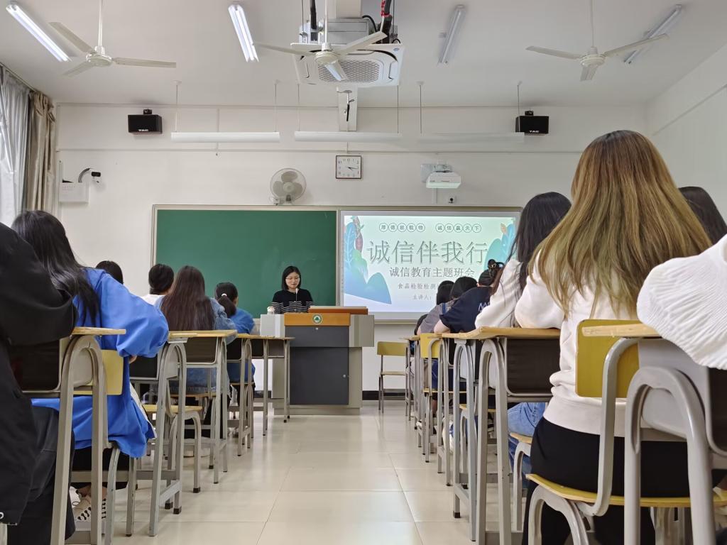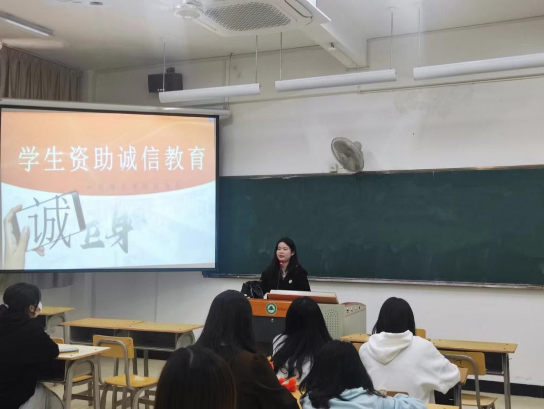 吴佳颖老师、叶知勇老师从同学们的日常生活中所能做到的诚信小事讲起,鼓励并号召同学们诚信考试、诚信申请奖助学金、诚信上网、诚信就业,激励同学们时刻讲诚信,用一言一行践行诚信。