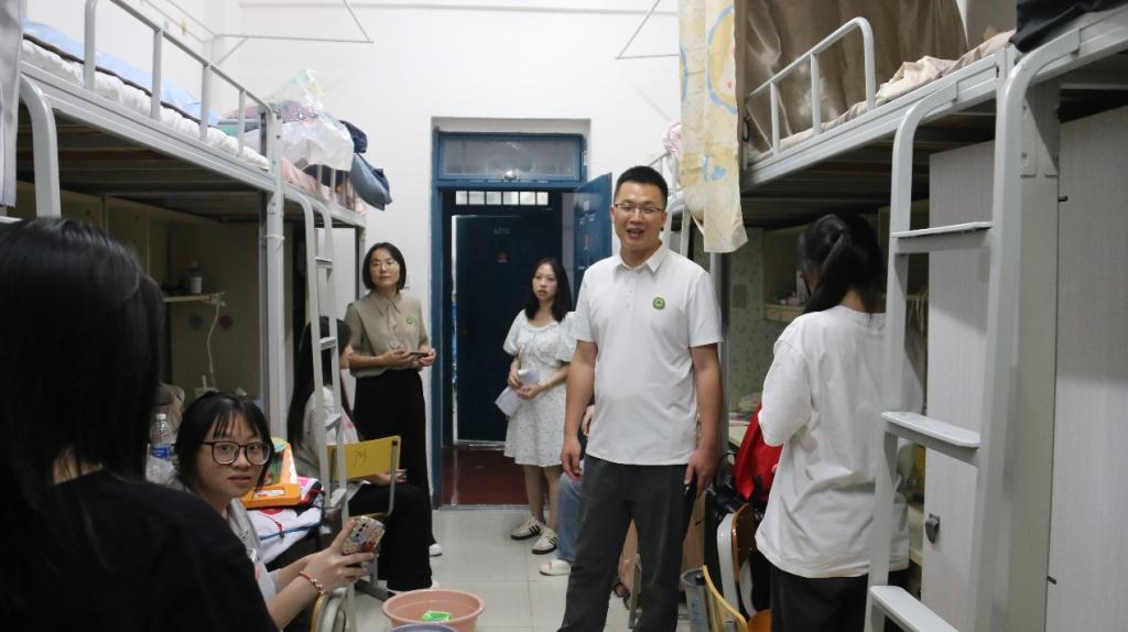 八月终,九月启,又是一年迎新季。为进一步了解林学系2023级新生入校第一天的情况,帮助新生尽快适应大学生活,2023年9月8日晚19:30,院党委委员李肇锋副院长、林学系领导班子成员及新生辅导员共同走访2023级新生宿舍,了解他们对学校的初印象及适应情况,向他们送去暖心的关怀和问候。