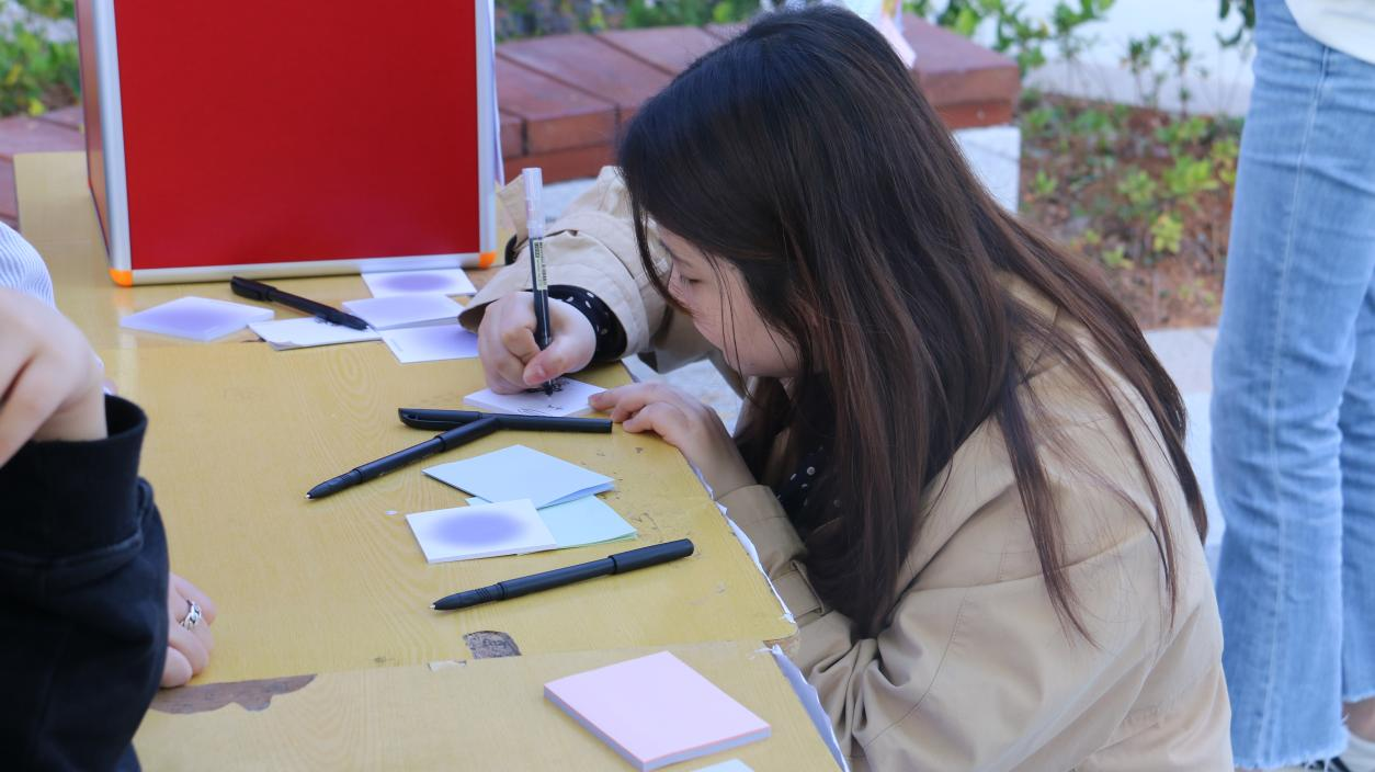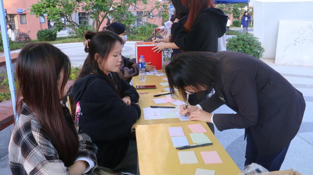 2023年12月14日,林学系两委会举办了“情绪垃圾桶”活动,在这个风和日丽的下午,工作人员在校园内对同学进行随机采访,对采访到的同学提问最近是否有遇到烦恼,将自己近期的烦恼通过口头表述出来,帮助他们找到不良情绪的根源。