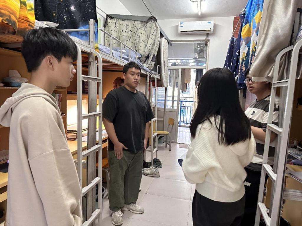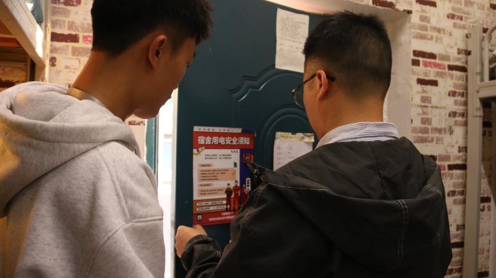 在走访过程中,傅成杰老师与同学们进行了亲切交流,了解同学们近期的学习、生活情况,提醒同学们冬季是火灾多发期,不要在宿舍存放易燃物品,不使用三无劣质插板,不使用高功率电器,不私拉电线,电器使用后及时断电,不向陌生人转账等。发现宿舍安全问题及时上报,保护人身财产安全。同时傅成杰老师强调了宿舍安全的重要性,提醒同学们要牢记宿舍用电安全,遵守校园规定,共同打造安全、整洁、的宿舍环境。