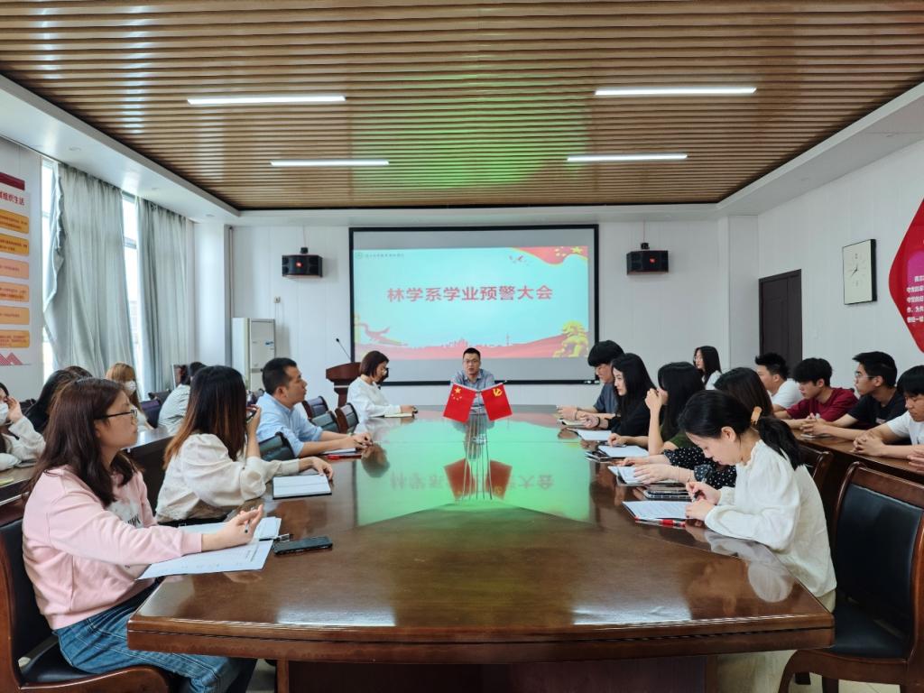 为进一步加强学风建设,完善我院学生管理工作,2023年4月26日上午,林学系在林学楼四楼会议室召开2022-2023学年第二学期学业预警工作会议。林学系党总支副书记傅成杰(主持工作)、学生科科长兼团总支书记马艳红、全体辅导员及本学期有旷课行为的同学参与此次会议。