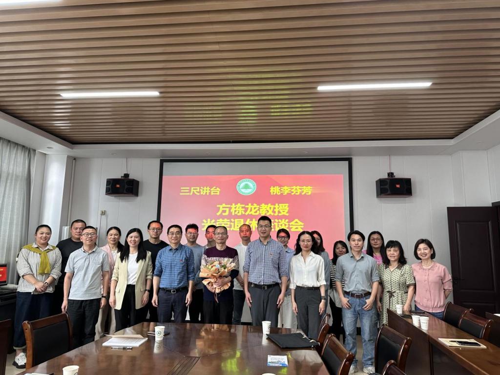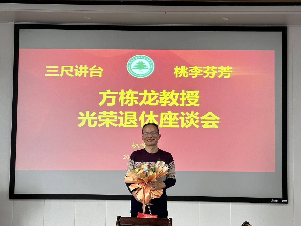 4月23日下午,林学系召开方栋龙教授光荣退休座谈会。会议由林学系党总支书记傅成杰主持,林业教研室全体教师参加。