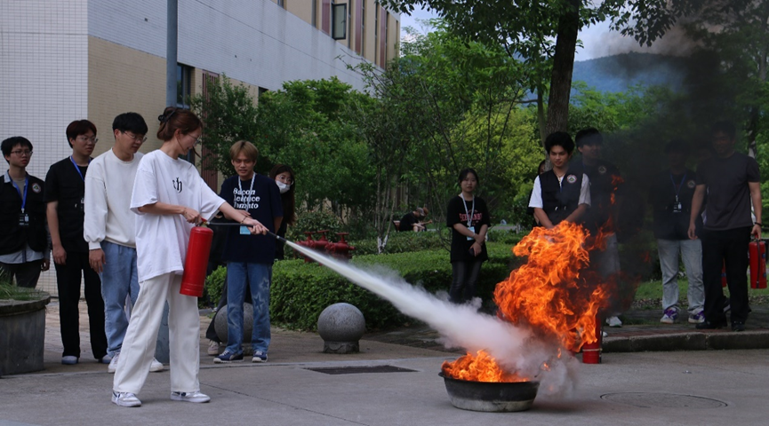 人虽有情,但火灾无情。为预防火灾保卫部的同学正确示范灭火器的使用方法,并请同学们亲身实践,通过实践操作同学们的防灾意识得到提升。