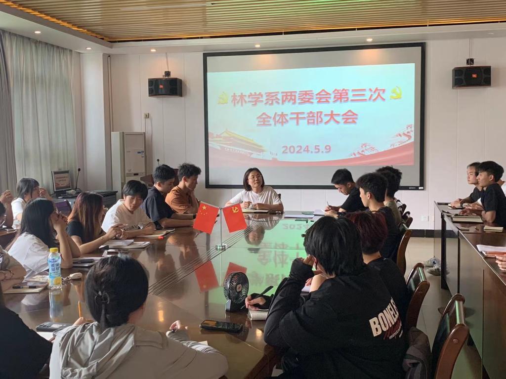 为了加强林学系两委会学生干部队伍的建设与管理,提升学生干部的综合素养、促进学生工作的发展和建设,林学系于2024年5月9日在林学楼会议室召开第三次两委会全体干部大会,林学系学生科长兼团总支书记马艳红主持会议,学生干部负责人参会。