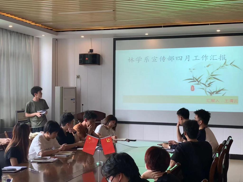 会上,林学系两委会学生干部代表部门对四月份的工作进行汇报,汇报中,学生干部对四月份的工作任务进行了总结,提出了对部门建设的未来规划和意见建议。