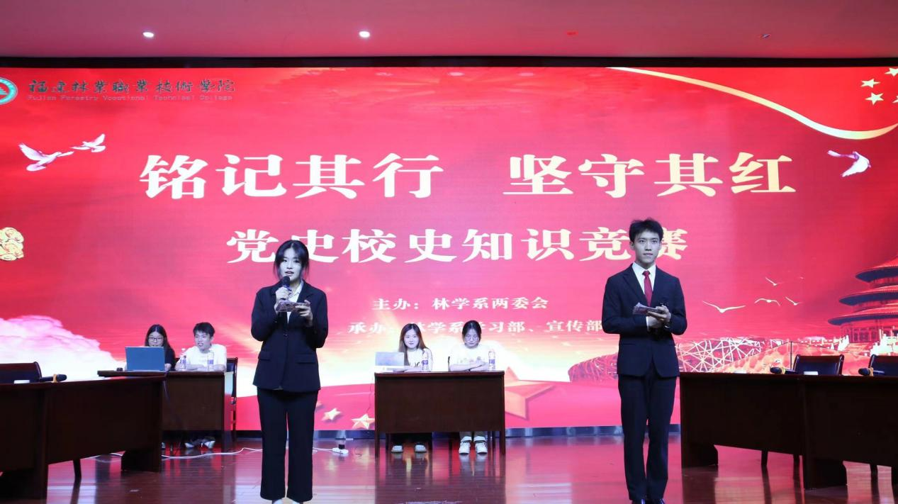 为弘扬党史、校史,传承红色基因;深入学习贯彻党的二十大精神,传承和弘扬天麟精神,增强广大青年学子的自信心和自豪感。林学系学习部携手宣传部于2024年5月19日在江南礼堂举行“铭记前行,坚守其红”知识竞赛决赛。