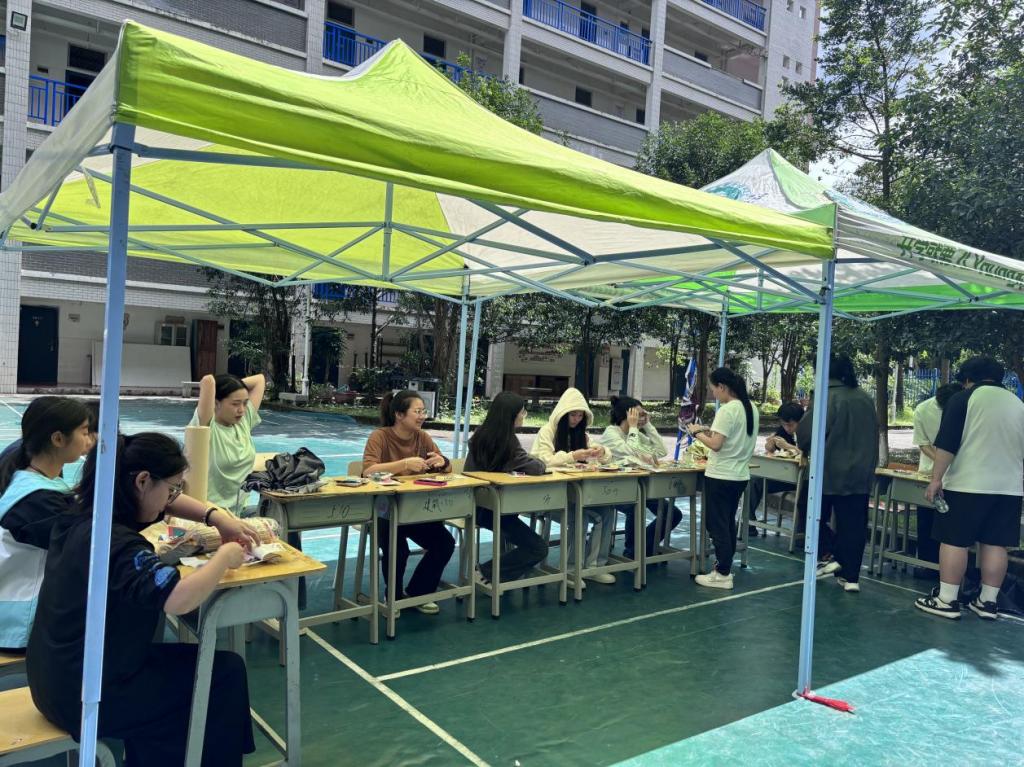 答完题过后前往香包制作点领取材料后,围坐在一起,桌子上摆满了五颜六色的布料、香料和缝纫工具。工作人员向同学们详细讲解了香包的制作步骤和技巧,同学们也迫不及待地拿起材料,开始动手制作。有的选择了鲜艳的红色布料,寓意着节日的喜庆;有的则偏爱淡雅的紫色,显得清新脱俗。大家根据自己的喜好,挑选布料、裁剪形状、填充香料,一针一线地缝制着属于自己的香包。