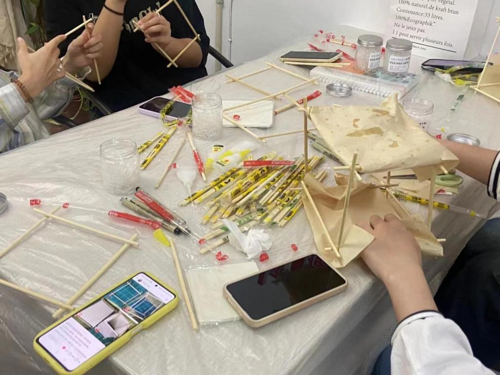 随着一盏盏花灯逐渐成形,同学脸上露出了喜悦的笑容。这些花灯形态各异,有的似莲花盛开,有的如蝴蝶翩翩起舞,每一盏都充满了参与者的创意和匠心。