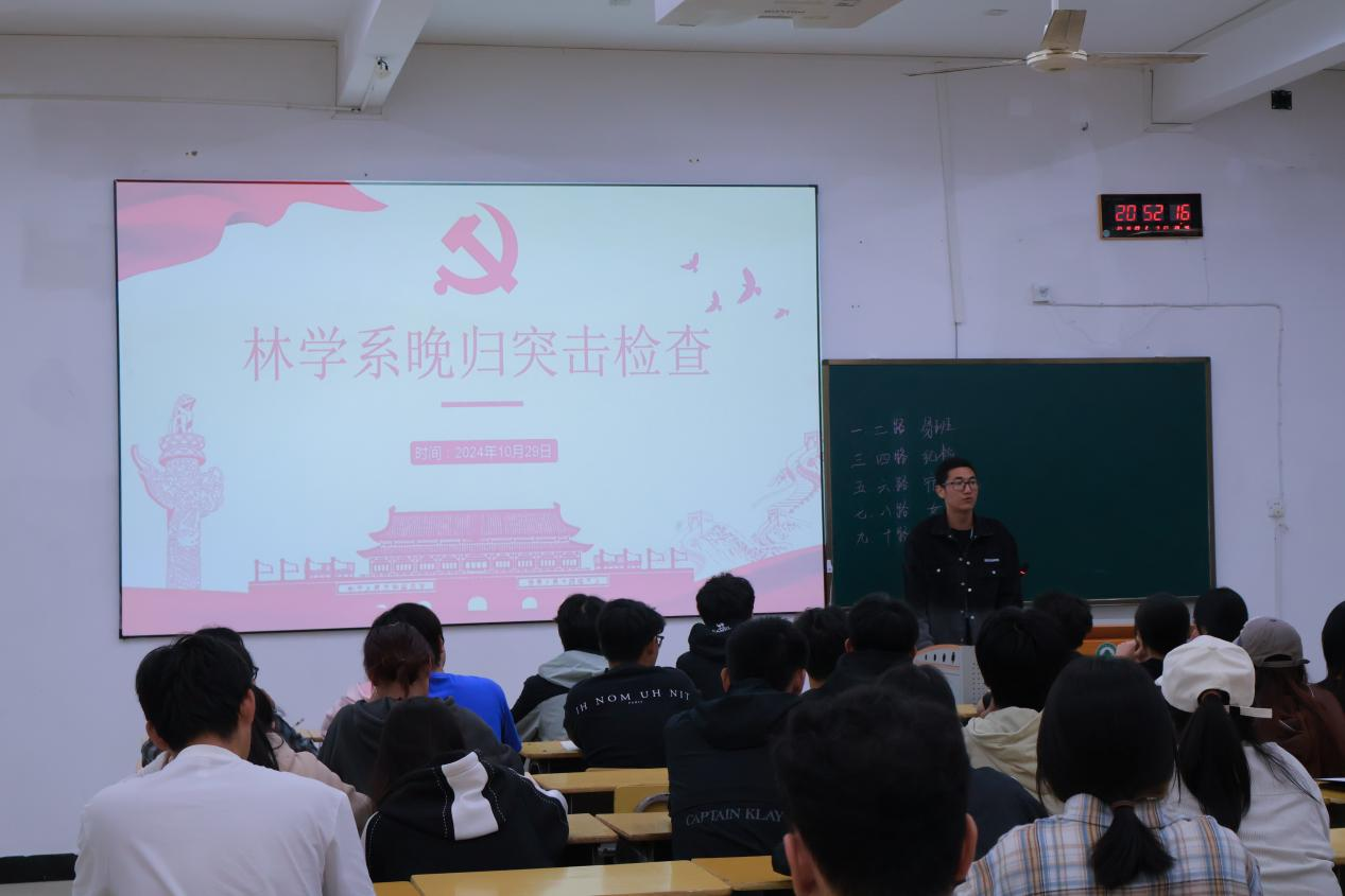 为了营造安全、有序、和谐的宿舍环境,林学系宿管部与女生部于10月29日晚22:00开展林学系晚归突击检查。