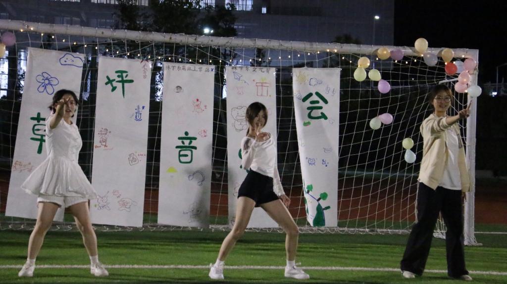 夜幕下,灯光闪烁,画布随风飘扬,伴随着音乐响起,整个操场变成了一个巨大的舞台,歌手们在台上热情地演唱,一首首耳熟能详的歌曲,让人忍不住跟着哼唱。观众们席地而坐,有的三五成群,有的独自享受,但无一例外,都被音乐的魅力深深吸引。大家随着节奏摇摆,脸上洋溢着青春的笑容。