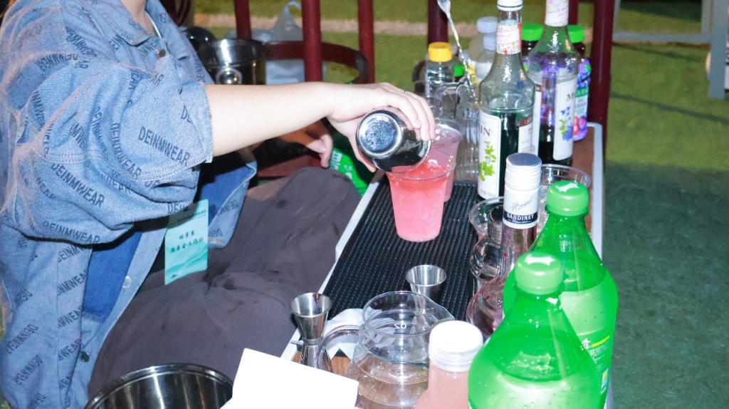 活动过程中增加了趣味性小游戏(闹钟炸弹),拉近人与人之间的联系还可以活跃气氛, 接下来为了让表演者有更好的体验凡是有参与上台表演的选手,可到旁边的咖啡与调酒协会的摊子上领取一杯亲手制作的饮品。