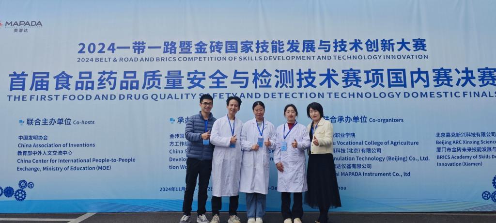 11月30日-12月2日,为期3天的2024“一带一路”暨金砖国家技能发展与技术创新大赛之首届食品药品质量安全与检测技术赛项(以下简称“赛项”)国内决赛在贵州农业职业学院成功举办。我院食品检验检测技术专业学生荣获团体一等奖1项、团体二等奖1项。林学系纪颖老师、周建森老师获得金奖优秀指导教师荣誉。