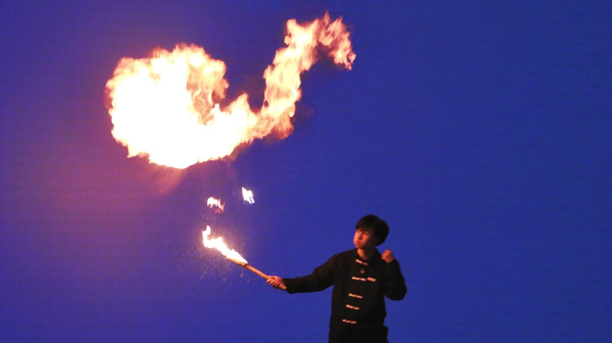 在舞台的光影交错间,一场震撼人心且承载着深厚文化底蕴的表演《华光绘锦》绚烂登场,每一次火焰的喷射的瞬间,燃烧的火舌舞动,一种狂野的自由和勇敢的决心涌上心头,点燃了现场每个人内心深处的梦想和热情。
