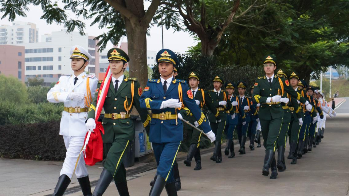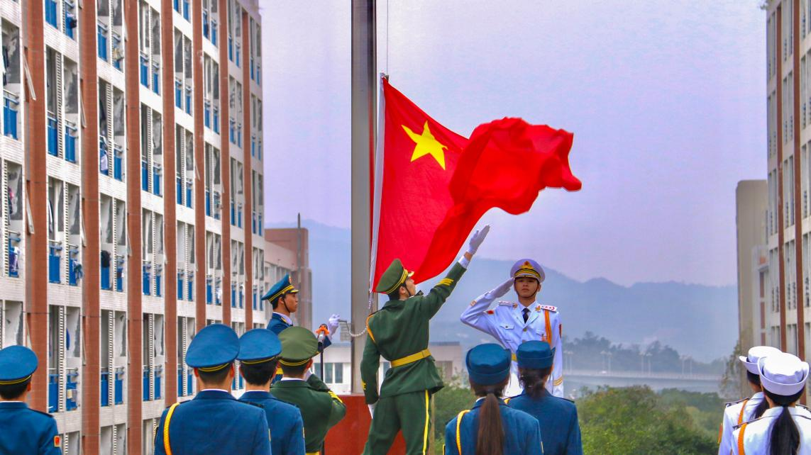 活动现场,国旗护卫队队员们以饱满的热情,庄重坚定的目光,双手紧紧握着五星红旗,随着《义勇军进行曲》的响起,冉冉上升的五星红旗迎风飘扬,高高地悬挂在广阔的天空。