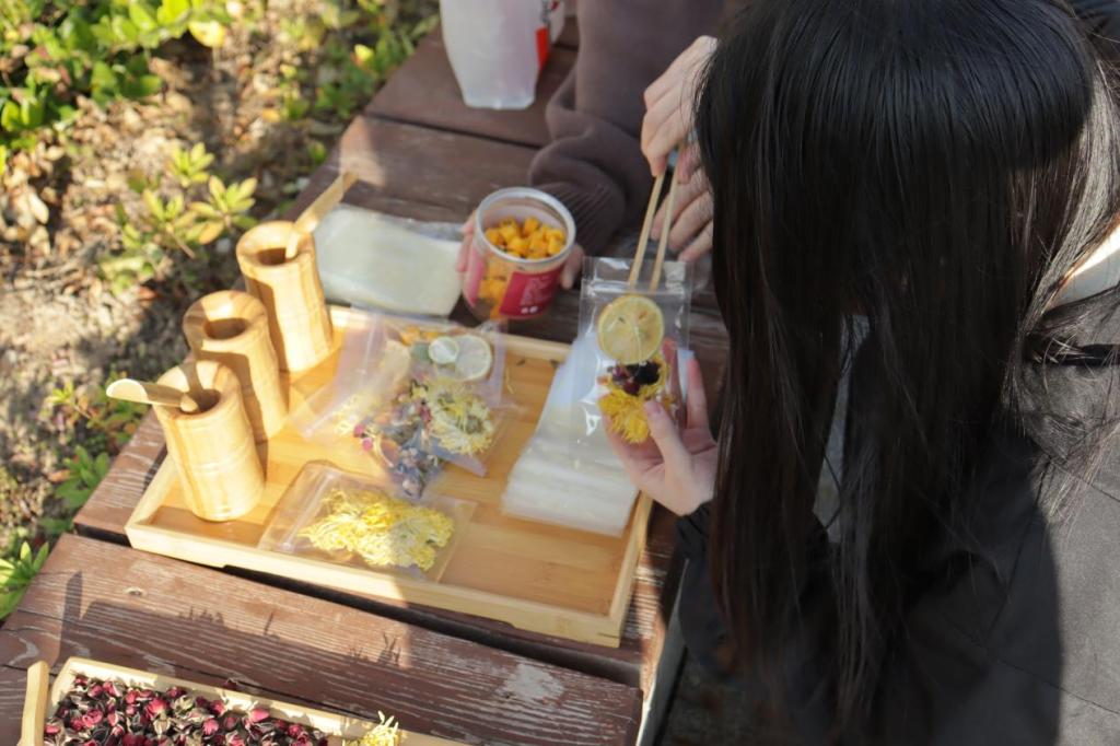 在这阳光明媚的暖冬里,赚取足够积分的同学们纷纷动手制作茶包。同学们根据自己的口味和喜好,选择茶叶的种类和用量,制作精美的茶包。在制作过程中,同学们不仅享受到了动手的乐趣,还深刻体会到了茶叶的独特魅力。