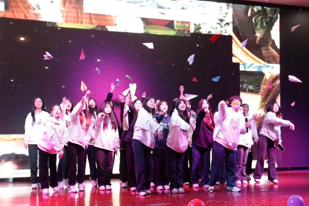 回首过往,我们一路同行,有欢笑,有汗水,那些共同奋斗的日子都成为了珍贵的回忆。而展望未来,我们满怀期待,心中有梦,眼中有光。接下来,有请女生部为我们带来合唱《我们的明天》。他们的歌声将带着我们对明天的憧憬与向往。
