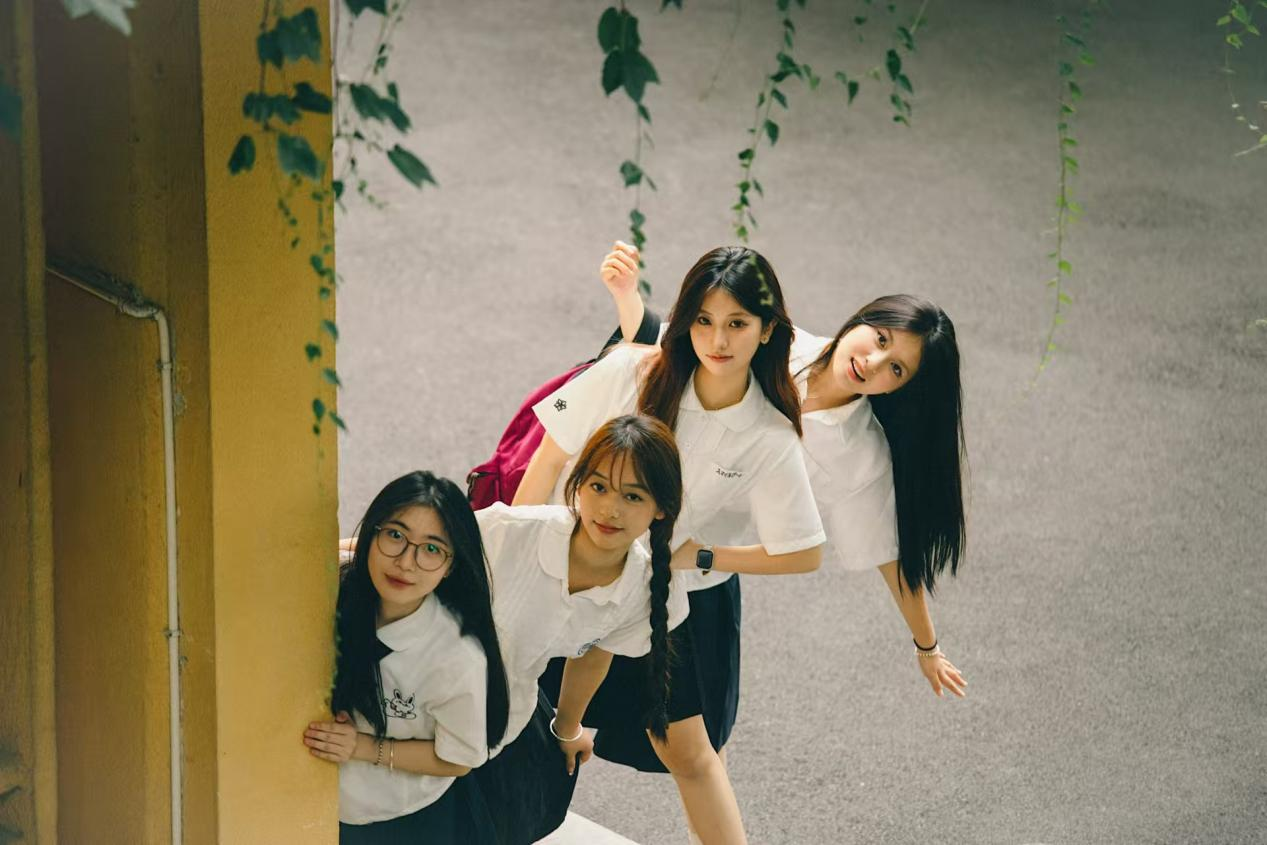 “草在结它的种子,风在播它的叶子,我们站着不说话就十分美好”热烈的青春比太阳还耀眼,穿着白衬衫和百褶裙,走在放学回家的路上,连风都是甜的,他们的笑容如同阳光,背景的绿植与黄墙,勾勒出青春的色彩。