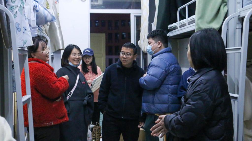 走访期间,辅导员也深入各个宿舍与同学们亲切交流,清点核对学生返校情况,了解假期学习与生活的点点滴滴,叮嘱同学们常与家人保持联系,以免亲人挂念。同时,辅导员们提醒同学们注意用电安全、人身安全、财产安全、消防安全等。并提醒同学们要及时调整作息时间,快速、及时规律学习状态,养成健康良好的学习生活习惯,以积极昂扬的精神风貌迎接新学期挑战。