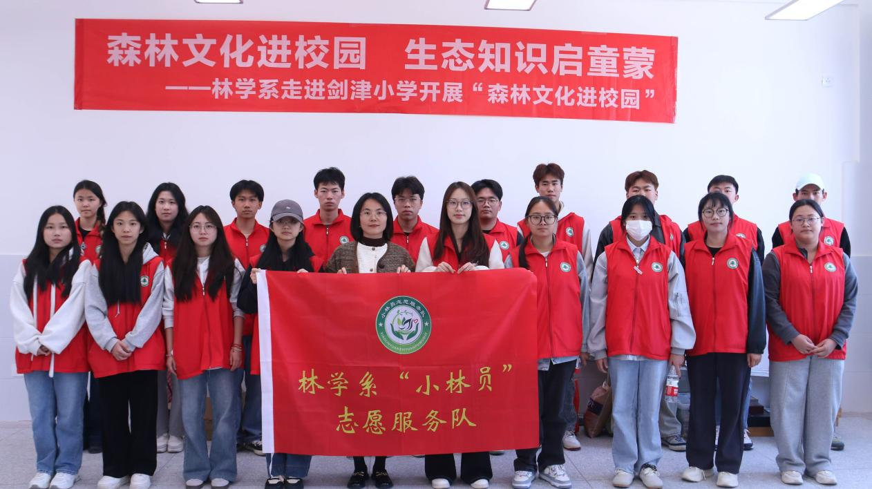 森林是大自然馈赠的绿色宝库,承载着人类悠久的文化记忆。校园作为知识传播与人才培养的关键场所,肩负着将生态文明理念融入教育体系的重要责任。为弘扬雷锋精神,践行志愿服务理念,林学系团总支志愿部携手“小林员”志愿服务队,联合林学系昆虫协会、草木缘协会于2025年3月20日赴南平剑津小学开展“森林文化进校园,生态知识启童蒙”主题森林文化科普志愿活动,传播生态文明理念,助力森林文化传承。