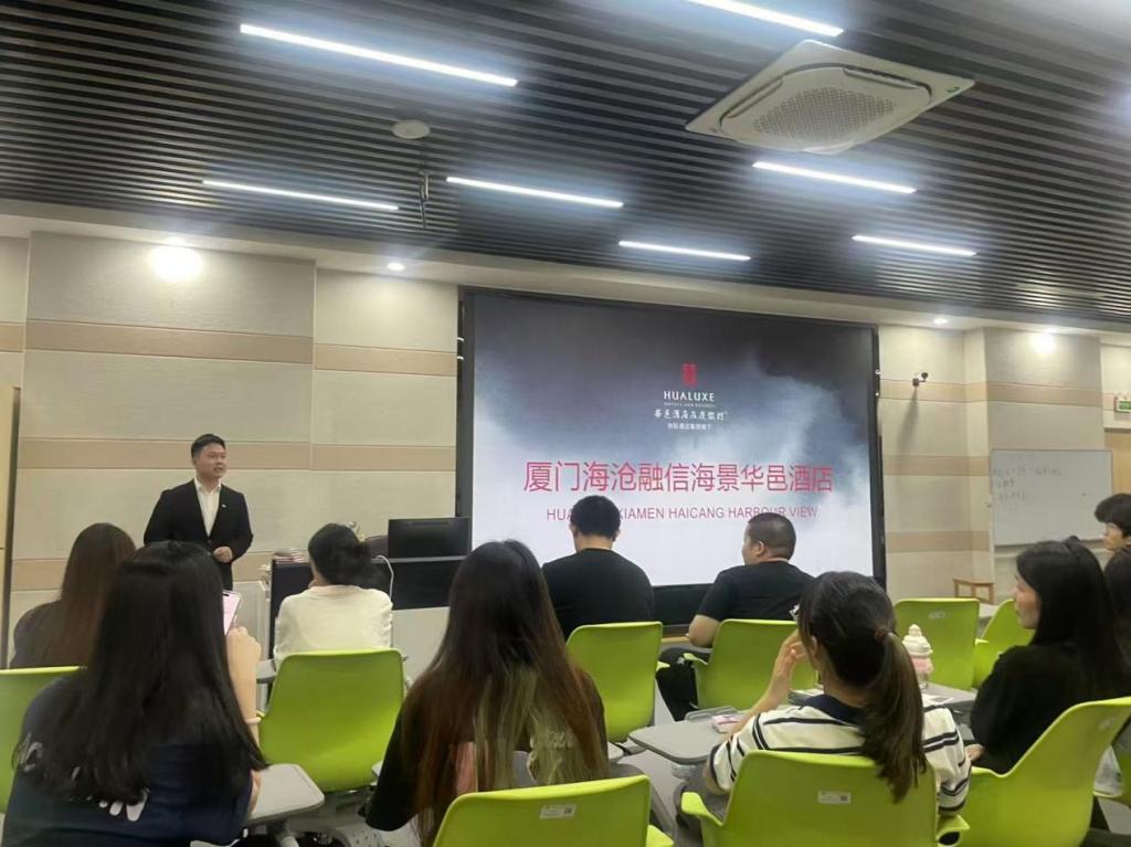 随后厦门海沧融信海景华邑酒店的负责人,给同学们介绍酒店招聘的岗位需求、薪资福利、晋升通道等内容,让同学们对每个工作岗位有了更加清晰的认知。