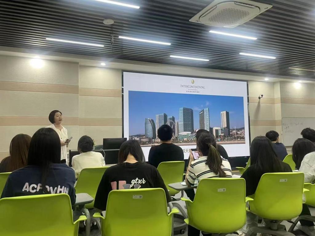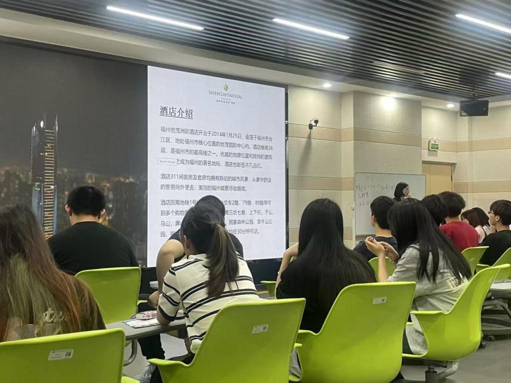 紧接着公司旗下的福州世茂洲际酒店的负责人全方位介绍企业。涵盖企业发展历程、行业地位、核心业务、企业文化、人才培养体系等,迅速拉近与学生的距离。
