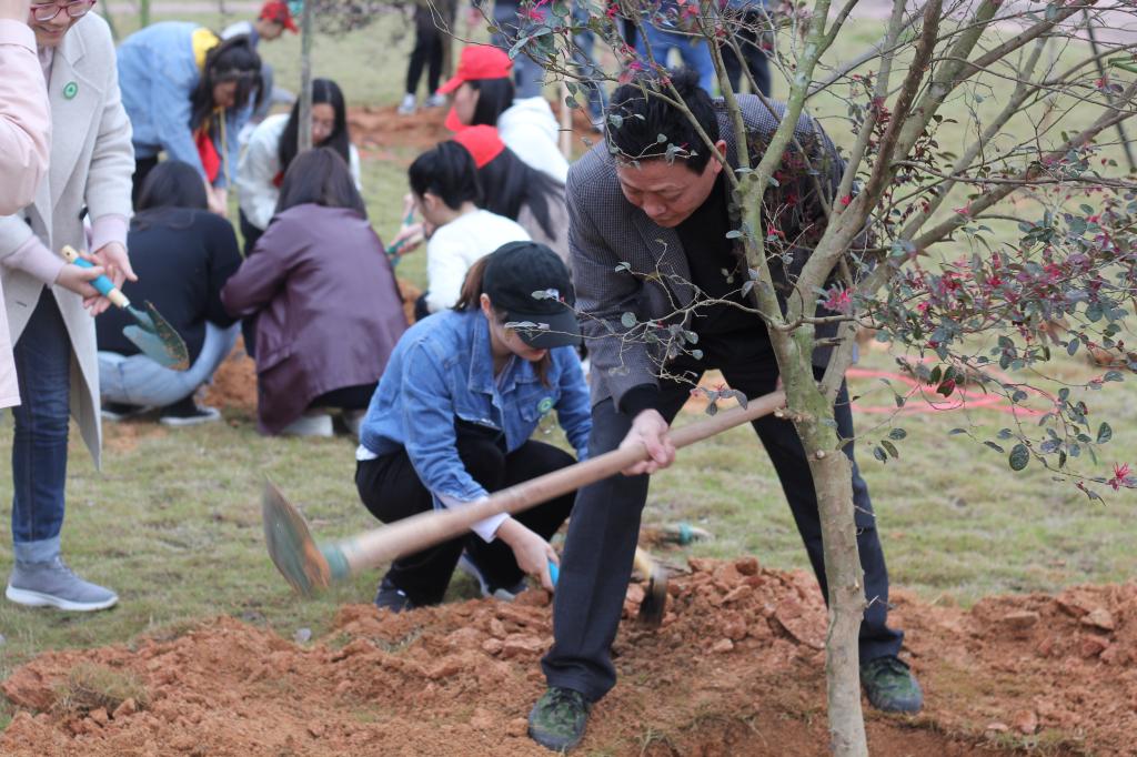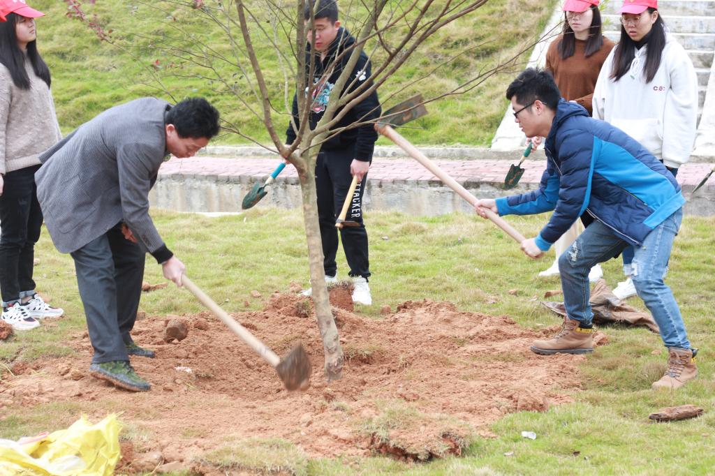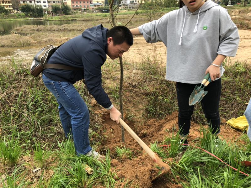 我系支部全体成员积极行动,将一颗颗树苗植入土里,干劲十足,激动人心。我系台湾老师巫智斌为洋坑村分析土壤土质,给出适合种植品种的指导性意见,还十分专业地讲解了樱花树的种植注意事项。