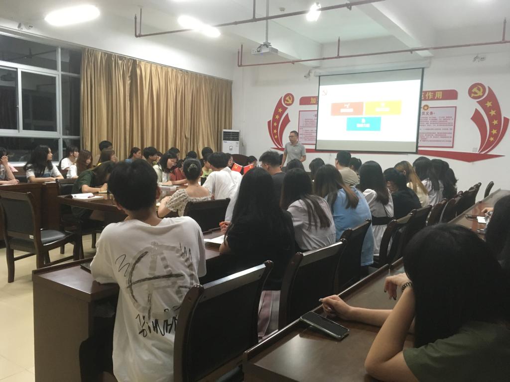 为推动党史学习教育落实落细,5月26日晚,系党总支书记徐洪开讲《弘扬“红船精神”,不忘初心使命》专题党课,学生第一、第二党支部党员、旅游管理2001班班委约60人参加了学习。