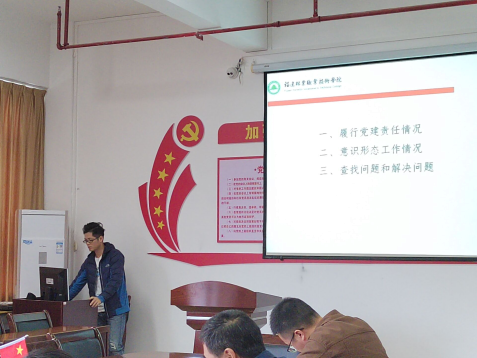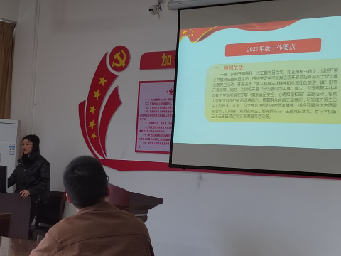 学生第一党支部书记罗勇从党建责任情况、意识形态落实、查找问题和解决问题三个方面入手,分别就2021的党建工作作了全面汇报,包括“学习、诊断、建设”内容、“样板支部”建设、党史学习教育情况以及发展党员情况等;接着学生第二党支部书记樊寿娜从2021年工作要点进行汇报;教工党支部书记纪颖提出“六个课堂”的思想和“五个一”的工程方向。