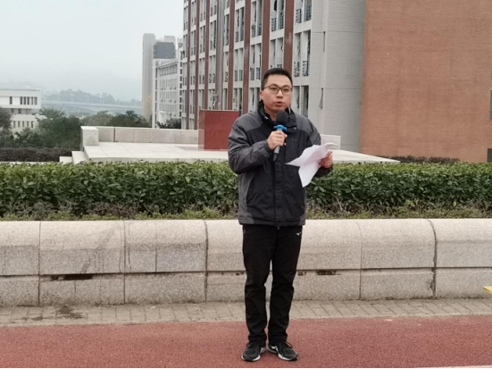升旗仪式结束后,张碧清老师向在场的学生介绍微党课授课教师及参加活动老师。