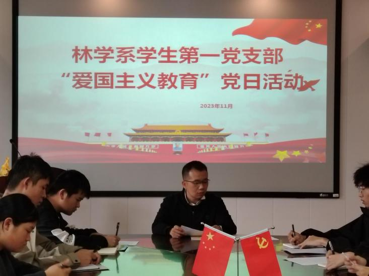 为进一步加强新时代爱国主义教育,传承和弘扬爱国主义精神,凝聚全面建设社会主义现代化国家、全面推进中华民族伟大复兴的磅礴力量,2023年11月29日林学系学生第一党支部开展“爱国主义教育”主题党日活动。本次会议由党支部书记叶知勇老师主持,支部全体同学参加。